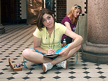 Ratusz już od kilku lat nie pełni jedynie funkcji urzędu miejskiego, ale jest również chętnie odwiedzany przez turystów. Jego wizerunek najczęściej rejestrowany jest w różnej formie od strony zewnętrznej. Słupszczanki Kasia i Karolina, na co dzień studiujące sztuki piękne w Łodzi i Warszawie postanowiły uwiecznić na rysunkach zabytkowe wnętrze magistratu. Od czwartku, 24 lipca br. można je zobaczyć swobodnie siedzące na I piętrze urzędu, w tzw. hallu prezydenckim, jak z pietyzmem zapisują na kartkach urok ratuszowych schodów i kolumn. Jak mówią - rysują dla przyjemności i dlatego, że lubią swoje miasto, chociaż czasowo znajdują się poza nim.