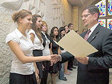 Z Gimnazjum nr 2 wyróżniono Weronikę Bowżyk, Karolinę Golec, Dominikę Klimek, Paulinę Lewandowską, Karolinę Pakułę oraz Dawida Stormana. Z Gimnazjum nr 3 stypendia będą otrzymywać Rafał Białek, Karolina Chmielowiec, Wiktoria Lipińska oraz Dominika Walkusz. Stypendyści z Gimnazjum nr 4 to Agata Ciesielska, Kamil Gruszczyński, Grzegorz Herdzik, Paweł Sikorski. Wyróżnieni z Gimnazjum nr 5 to Emilia Błeszyńska, Weronika Gronowska, Natalia Kłonowska, Patryk Kowalski, Karol Lubarski, Magdalena Maciejewska, Milena Ożga oraz Alicja Pałgan. Z Gimnazjum nr 6 stypendia przyznano Annie Błaszkiewicz i Marcinowi Grzelakowi. Stypendyści z I Liceum Ogólnokształcącego to Marcin Barlik, Marcin Barłog, Paweł Bocian, Grażyna Łoś, Anna Wojciechowicz, Alicja Zwiewka oraz Paweł Żuk. Liczne grono wyróżnionych z II Liceum Ogólnokształcącego to Agnieszka Arcimowicz, Anna Bowżyk, Agata Brzezińska, Roma Dasgupta, Dagmara Krysiak, Weronika Megier, Piotr Müller, Monika Storman, Wojciech Waśko, Edyta Wirkus oraz Natalia Woźniak. (mas) |