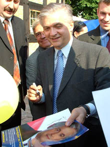 Po krótkiej przerwie Włodzimierz Cimoszewicz spotkał się na Rynku Rybackim z mieszkańcami miasta, gdzie zaprezentował swój program wyborczy, podpisał parę autografów, po czym wyjechał ze Słupska. (jas)
