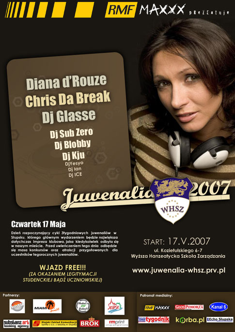 - Rozpoczęcie imprezy klubowej z udziałem największych gwiazd sceny muzyki elektronicznej w Polsce (Diana d’Rouze, Chrid Da’Break, dj Glasse) + lokalne gwiazdy słupskiej sceny klubowej (sub zero i blobby)