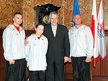 Prezydent miasta Maciej Kobyliński spotkał się w swoim gabinecie z trenerem i zawodnikami Pomorskiego Klubu Oyama Karate. W trakcie wizyty prezydent wręczy sprzęt sportowy Paulinie Butkiewicz zdobywczyni złotego medalu na MP J w karate w kategorii + 55kg. Życzył również dalszych sukcesów sportowych Bartoszowi Fieducikowi, który wraz z trenerem senseyem Waldemarem Leończykiem reprezentować będzie Słupsk podczas Mistrzostw Świata w Danbury w USA. (jas)
