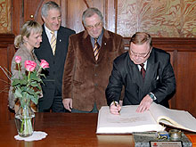 Do Słupska z kurtuazyjną wizytą przyjechał Juhani Paajanen prezydent Vanty - miasta w Finlandii, z którym Słupsk w 1987 roku podpisał umowę o współpracy partnerskiej. We wtorek gość spotkał się w ratuszu z prezydentem Maciejem Kobylińskim oraz dokonał wpisu do księgi pamiątkowej. Tego samego dnia odwiedził też Herbaciarnię w Spichlerzu Richtera, gdzie spotkał się z członkami Oddziału Słupskiego Towarzystwa Przyjaźni Polska-Finlandia. W drugim dniu wizyty prezydent Vanty odwiedził m.in.: Słupską Specjalną Strefę Ekonomiczną, Przedsiębiorstwo Gospodarki Komunalnej, Zamek Książąt Pomorskich i Ustkę. (jas)