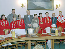 Prezydenta miasta Maciej Kobyliński spotkał się z 10 podopiecznymi Ośrodka Szkolno - Wychowawczego w Słupsku, którzy uprawiają sport w ramach Polskiego Towarzystwa Społeczno-Sportowego „Sprawni - Razem”. W ubiegłym roku, pod kierunkiem nauczyciela WF Wiesława Romańskiego zdobyli oni w zawodach rangi Mistrzostw Polski 14 medali: 2 złote, 5 srebrnych i 7 brązowych. Zawodnicy i ich trener otrzymali z rąk gospodarza Słupska listy gratulacyjne i drobne upominki.